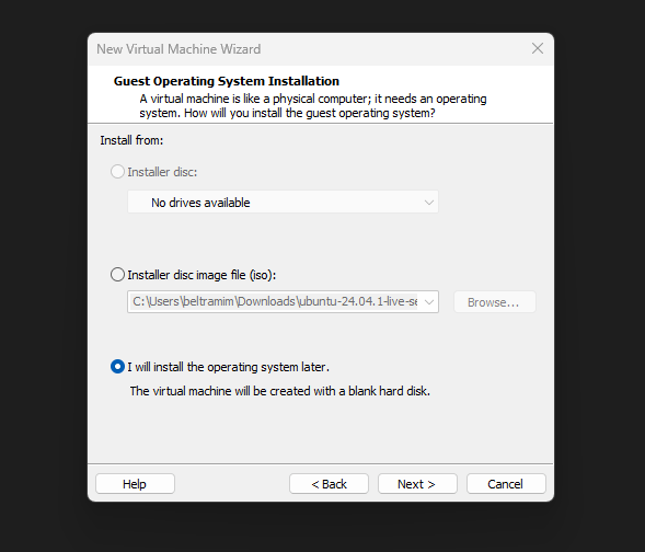 - Scegliere I will install the operating system later