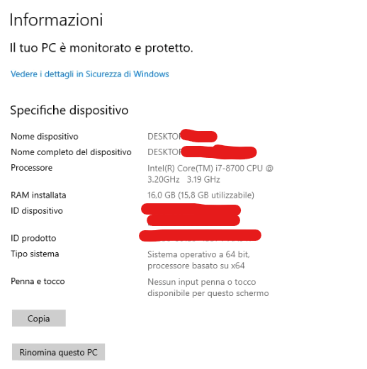 Troverete queste info, a colpo d’occhio, su questo computer vediamo che il processore I7-8700 è compatibile con il passaggio.
