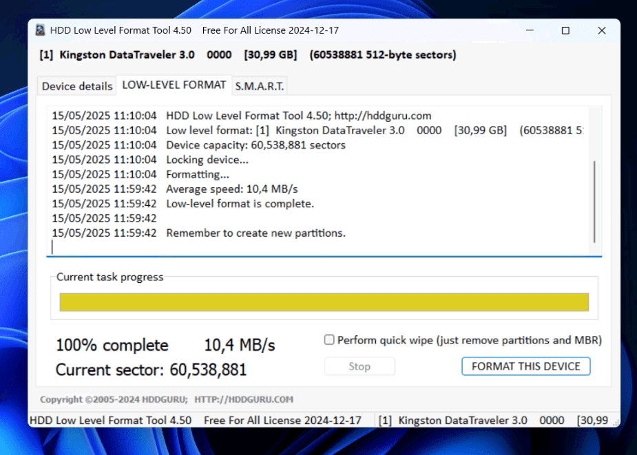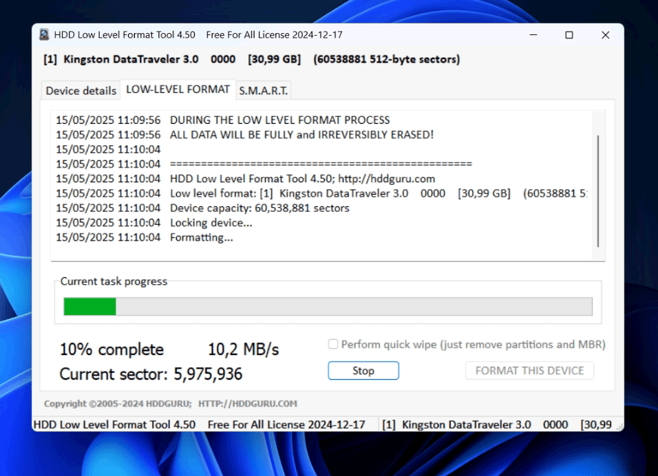 Formattare un disco non basta per eliminare veramente i dati. Se hai bisogno di una cancellazione profonda e definitiva, strumenti come HDD Low Level Format Tool.