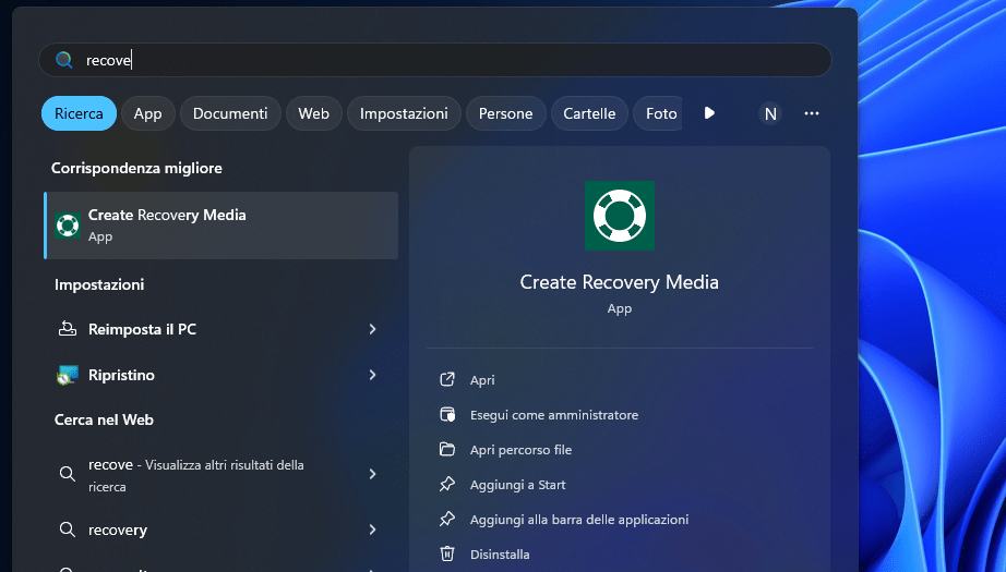 - I passaggi standard per creare il recovery media.