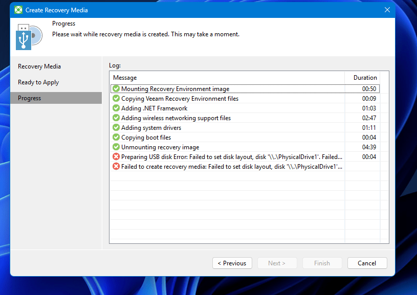 🔸 Perché Veeam dà errore Code 50 durante la creazione USB?