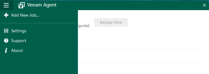 Dopo l’installazione, lancia Veeam Agent for Windows dal menu Start o dall’icona nella system tray o da cerca sulla barra.