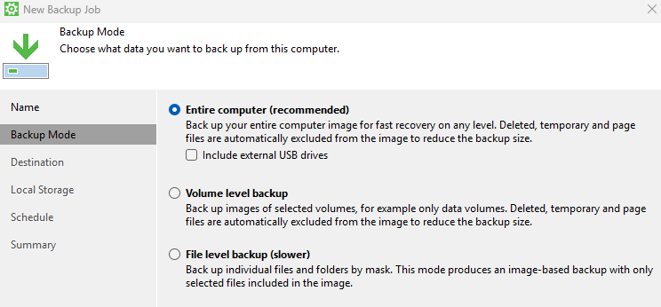 Con Veeam Agent for Windows Free, è possibile proteggere in modo semplice e gratuito i tuoi sistemi Windows locali. Puoi configurare backup completi o selettivi, pianificati o manuali, e salvarli ovunque: su dischi esterni, NAS o cartelle condivise.