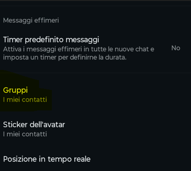 - I miei contatti tranne…: puoi escludere singoli contatti dalla possibilità di aggiungerti ai gruppi.