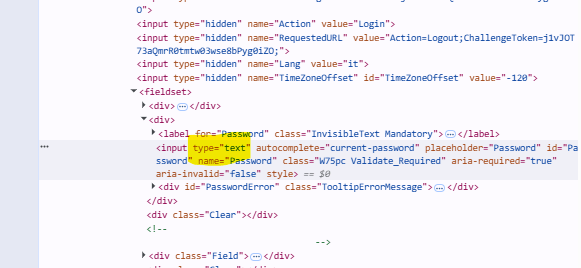 Ed è proprio quel type=”password” che dice al browser di mostrare solo i pallini invece della password vera.