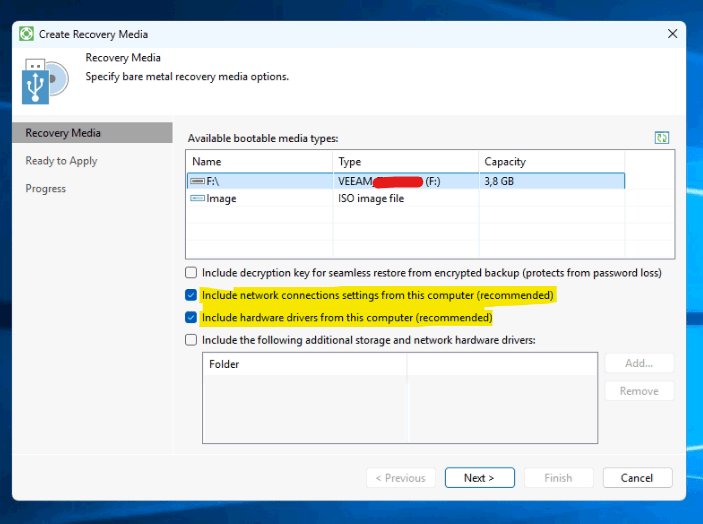 Procedura per creare il Recovery Media USB con Veeam Agent for Windows