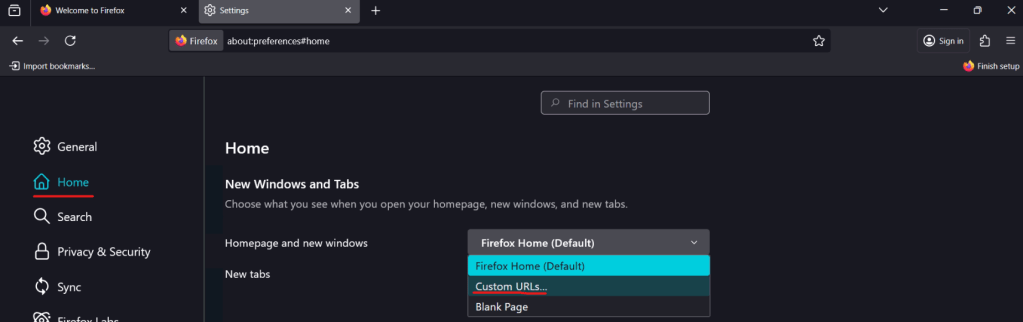 - Vai su Pagina Start, Home e Nuova scheda