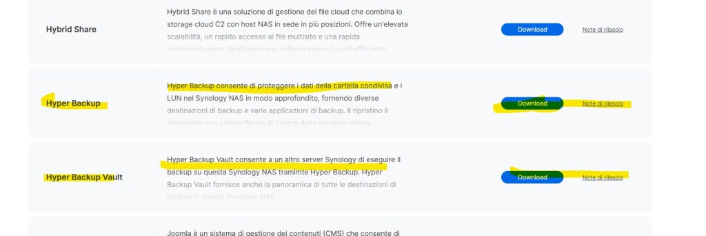 Andiamo sulla sezione pacchetti e troviamo Hyper Backup e Hyper Backup Vault
