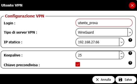 - Chiave precondivisa (PSK): attiva la checkbox e salva l’utente.