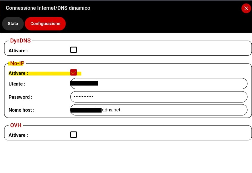 - Attiva la sezione No-IP