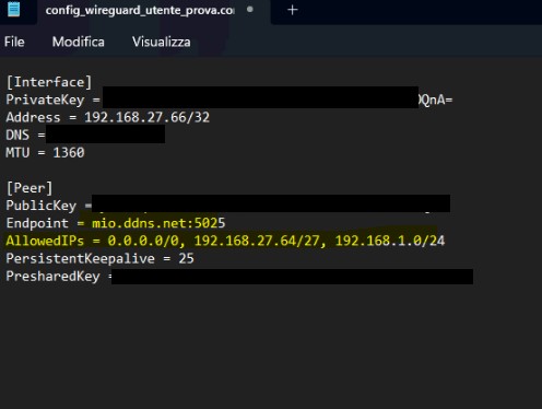 | Non raggiungi 192.168.1.x | AllowedIPs deve includere 192.168.1.0/24 |