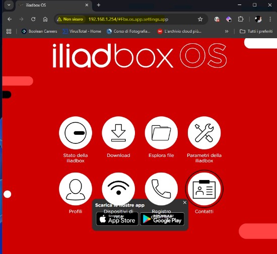 - Accedi all’Iliadbox → http://192.168.1.1 (o 192.168.1.254)