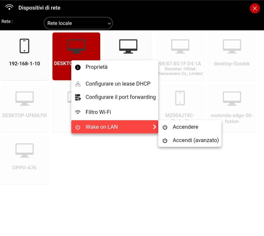- clicca sul client che hai configurato e appare il menù con Wake On LAN , Accendere e in poco tempo dovrebbe accendersi il computer a casa.
