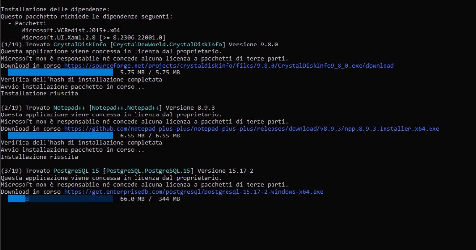 Vedrai scaricare tutti i pacchetti che trova e vedrai lo scorrimento dei download.