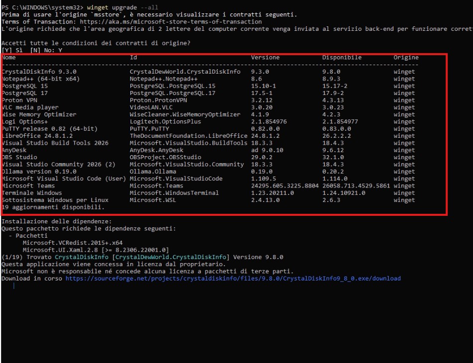 L’aggiornamento massivo tramite gestori di pacchetti come Winget può ignorare eventuali breaking changes nelle dipendenze o introdurre regressioni inaspettate. Se utilizzi software critici per la produzione o ambienti di sviluppo con configurazioni specifiche, l’aggiornamento “cieco” potrebbe corrompere i file di configurazione (config files) o causare conflitti tra librerie. Prima di aggiornare software di lavoro essenziale, è sempre buona norma consultare il changelog e verificare la compatibilità con il tuo attuale stack tecnologico e fare un backup preventivo.